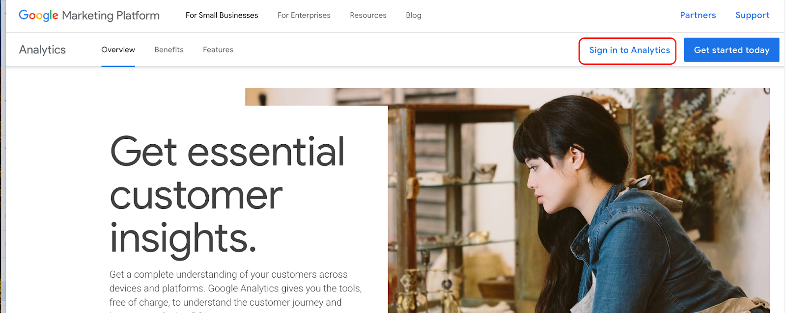 Sign in to “Analytics” using this link: https://marketingplatform.google.com/about/analytics/