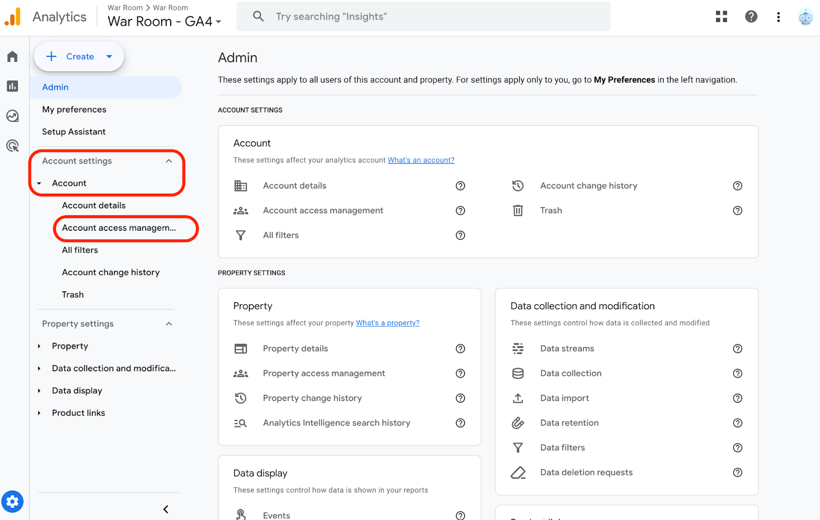 Ensure you’re on the appropriate Account and select, “Account” and then “Account Access Management”: