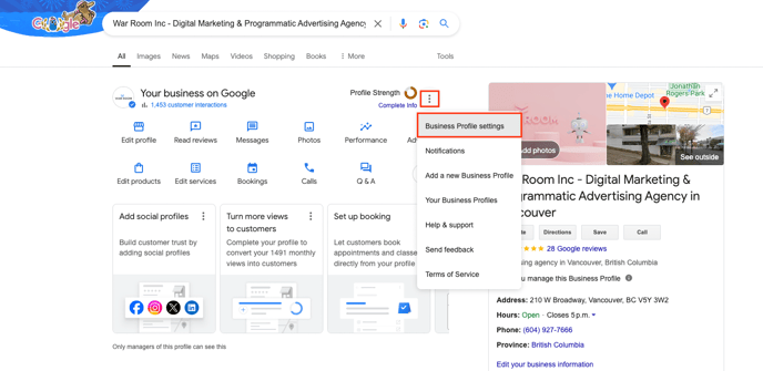 Find your Business on Google. And select Business Profile settings.