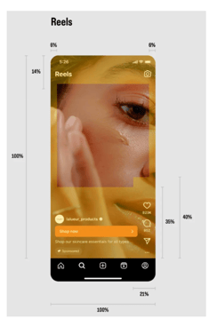 - Consider leaving 14% of the top, 13% of the bottom, and 6% on each side of your asset free from text, logos, or other key creative elements to avoid cropping keys or covering elements with the profile icon or CTA.